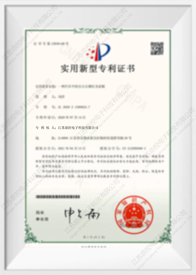 Certyfikat patentowy na wzór użytkowy dla lewych i prawych paneli świetlnych konsoli środkowej samochodu