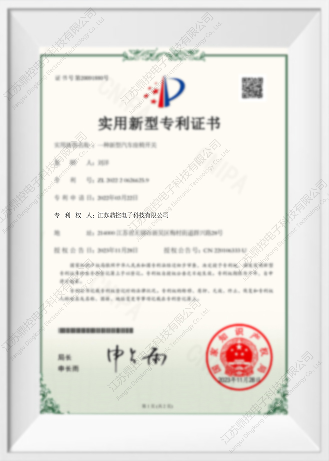Certyfikat patentowy na wzór użytkowy nowego typu przełącznika fotela samochodowego