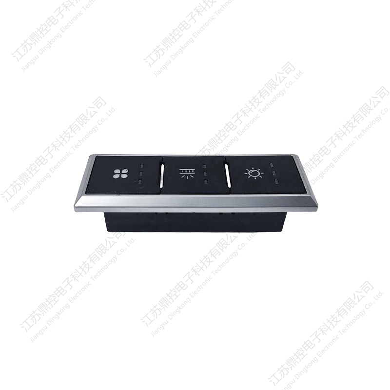Trójprzyciskowy przełącznik do lamp sufitowych koncentruje się na wyrafinowanej kontroli oświetlenia pojazdu i jest przeznaczony do scen o różnorodnych wymaganiach dotyczących oświetlenia wnętrza, takich jak samochody kempingowe i pojazdy użytkowe. Tryb pełnej jasności spełnia codzienne potrzeby oświetleniowe, a tryb półjasny nadaje się do miękkiego światła podczas nocnego odpoczynku. Jest łatwy w obsłudze i nie wymaga wielokrotnej regulacji. Wewnętrzny obwód przełącznika jest wyposażony w zabezpieczenie przed przeciążeniem, aby zapobiec wpływowi awarii oświetlenia sufitowego na cały obwód pojazdu. Niewielki rozmiar można wbudować w dachowy panel sterowania i zintegrować z wystrojem wnętrza.